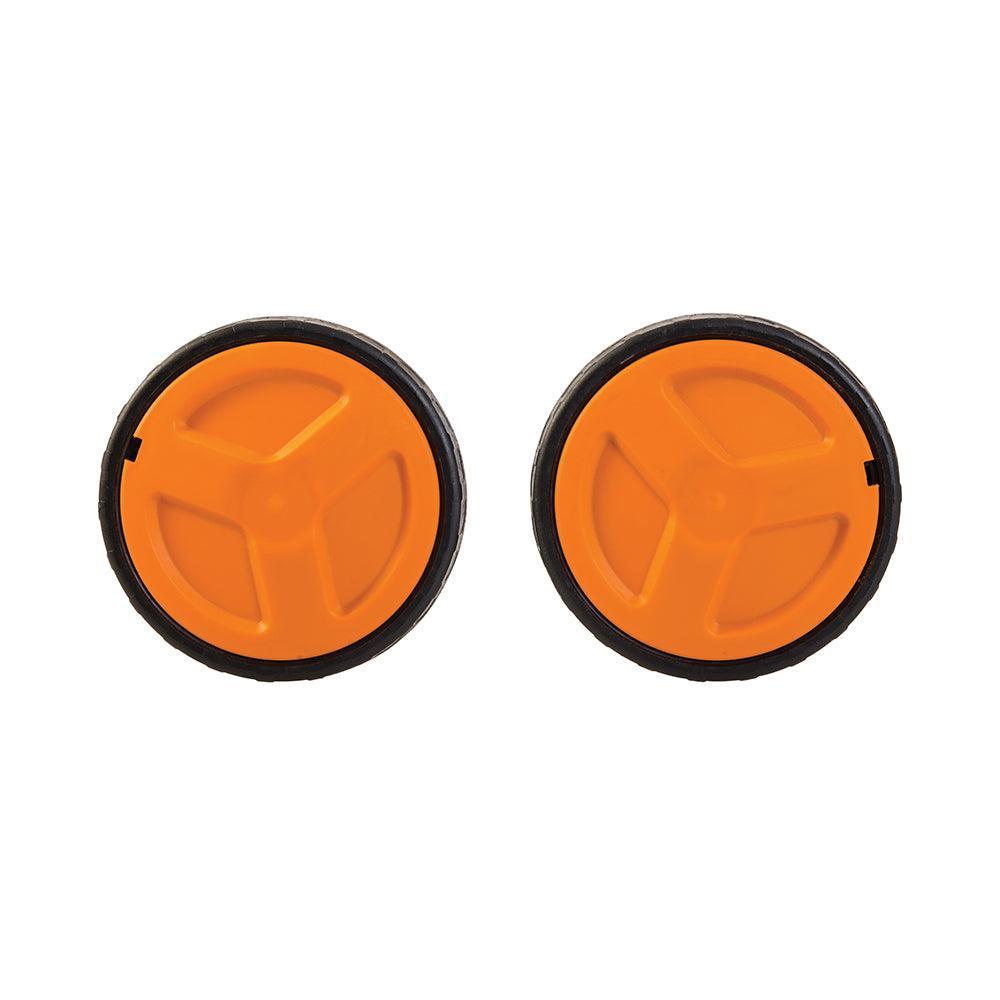 Transportwielbevestiging met grote diameter voor het Workcenter frame, geschikt voor gebruik op oneven terrein. Het loopvlak met groefpatroon op de omtrek van het wiel zorgt voor een optimale en constante grip. Interne glijlagers houden de wielen perfect concentrisch op de as, wat de slijtage en spoorverlies minimaliseert. De externe wielbeschermers beschermen de as en bevestigingsmiddelen tegen vuil. Duurzaam ABS gevormd transporthandvat. Draai het handvat tijdens gebruik voor een optimaal gebruikscomfort. Groot handvat bevestigingspunt zorgt voor een gelijke drukverspreiding tijdens verplaatsing.
