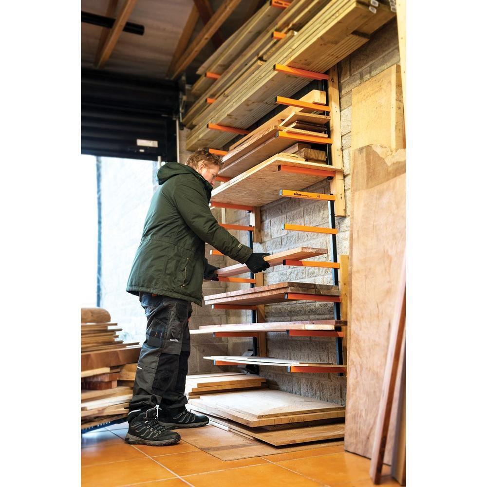 Creëert een royale opbergruimte voor hout, pijpleidingen en andere lange voorwerpen. Kan zowel binnen als buiten worden gemonteerd bij werkplaatsen, garages, schuren, op hekken en muren enz. 6 opbergniveaus. Gemakkelijke te plaatsen.