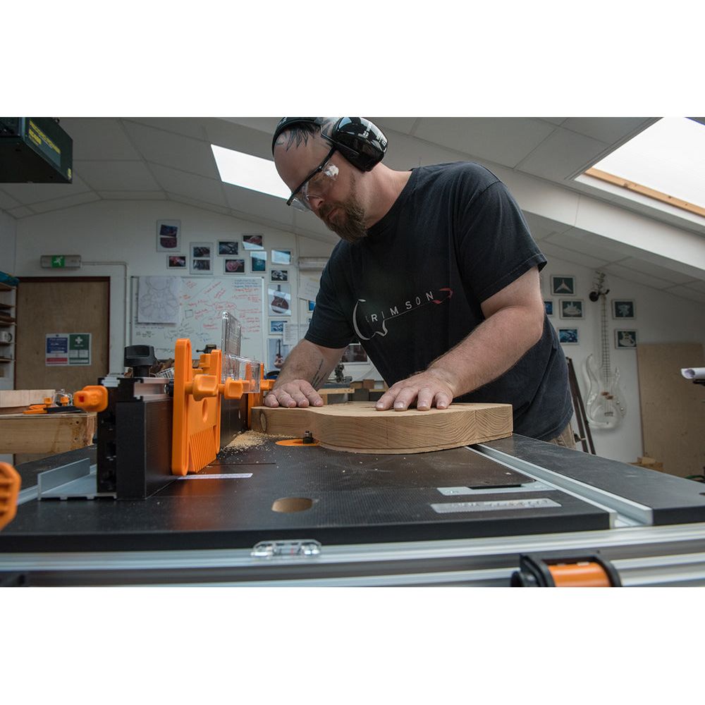 De TWX7 freestafel module is rijk aan functies, waaronder een aluminium hoofdgeleider, verstelbare zijgeleiders, microstellers, geleider afstandsstukken, en een beschermkap. Ook zijn er verticale en horizontale drukelementen aanwezig, plus een stofpoortaansluiting die helpt om uw werkgebied schoon en vrij van rommel te houden.