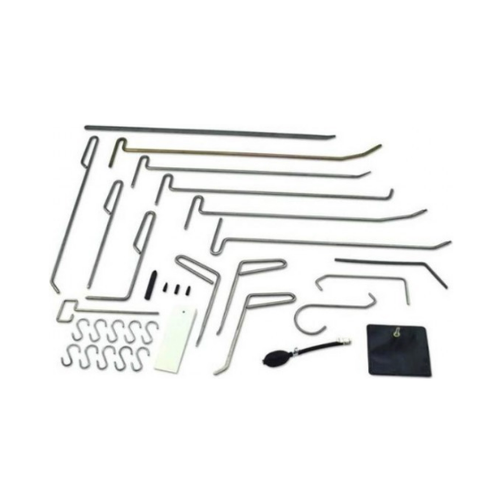 Ontdek onze hoogwaardige "Uitdeuk set Zonder Spuiten", een professionele en uitgebreide oplossing voor het efficiënt verwijderen van hagelschade en kleine deukjes op uw voertuig. Deze 33-delige set wordt geleverd in een handige opbergzak, waardoor u al het gereedschap overzichtelijk en binnen handbereik houdt.