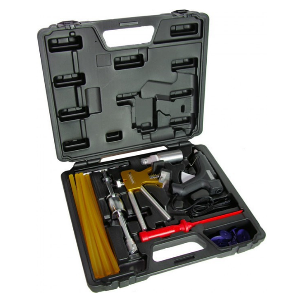 - Deuklifter met kunststof afzetstukken om zonder beschadiging van de lak deuken te liften op een vlakke ondergrond