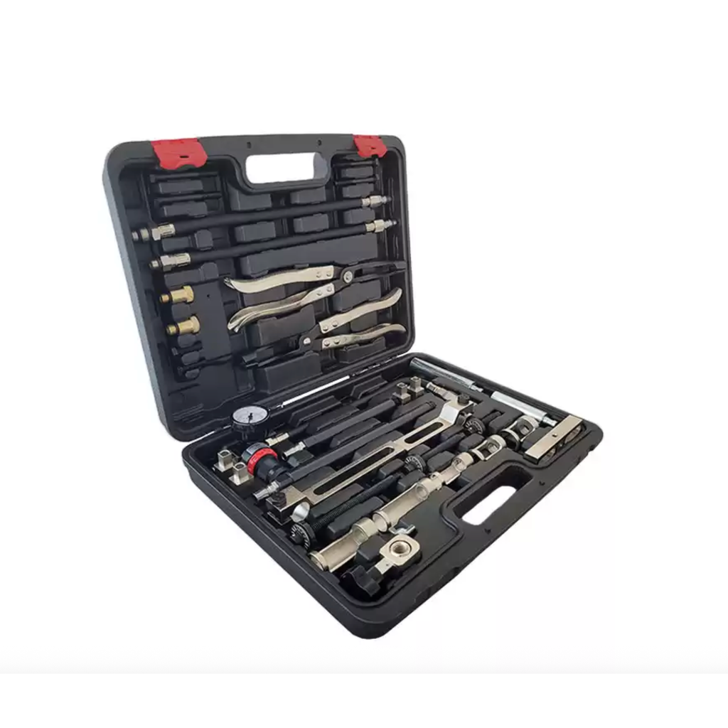 Speciaal gereedschap dat ontworpen is voor het efficiënt verwijderen en installeren van klepveren en klepsteel keerringen. Geschikt voor een breed scala aan motoren, waaronder Benz M102, M103, M104, M111, M113, M271 en M272, evenals BMW N42, N52, N62, M54, M52, M56 en M60. Daarnaast geschikt voor VW Audi, Mitsubishi en Honda motoren. Ontworpen voor precisie en duurzaamheid, zorgt deze tool voor een veilige en probleemloze werkwijze.