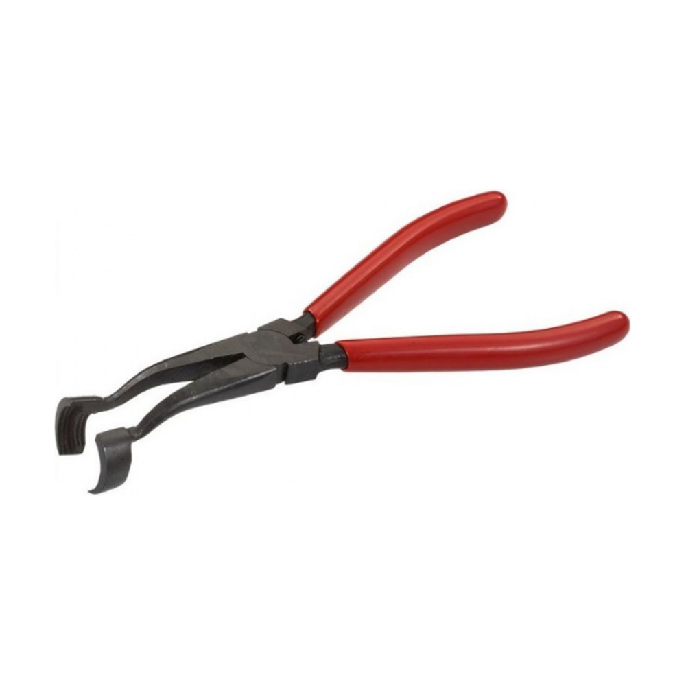 Wat deze tang onderscheidt van andere gereedschappen op de markt, is de unieke gebogen nek. Deze innovatieve vorm stelt je in staat om de pinnen moeiteloos op hun plaats te houden, zelfs wanneer je te maken hebt met beperkte ruimte of obstakels zoals de wielnaaf. Dit maakt de Veerplatentang uiterst gebruiksvriendelijk en vermindert de kans op schade aan de remonderdelen tijdens het werken.