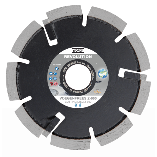 Absolute topkwaliteit! Hoogbelastbare, lasergelaste, premium voegenfrees met kernbescherming voor zachte cementvoegen. Segmentbreedte 6 of 8 mm. Made in Germany.