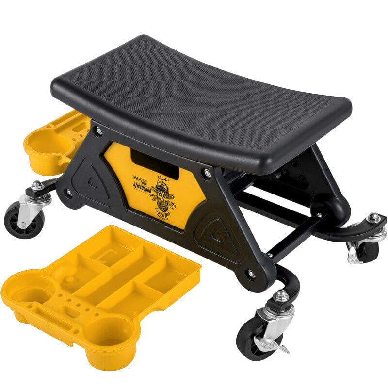 De kruk heeft een draagvermogen van 130 kg en is compact genoeg om makkelijk op te bergen of onder de werkbank te schuiven. De handige opbergbak voor onderdelen en gereedschap (zoals op de foto) zorgt ervoor dat je schroeven, doppen en klein materiaal altijd binnen handbereik hebt. Een praktische upgrade voor iedere werkplaats.