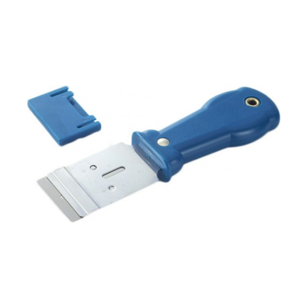 Handige glasschraper voor het verwijderen van bijvoorbeeld verfresten, lijmresten en stickers op autoruiten. Met vervangbaar dubbelzijdig mes. Breedte: 40 mm.