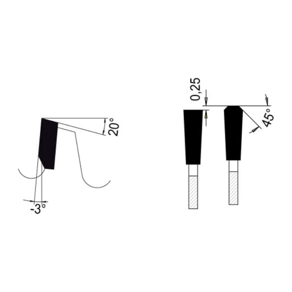 - Tandvorm (TF) = Trapezium Vlaktand met negatieve spaanhoek
